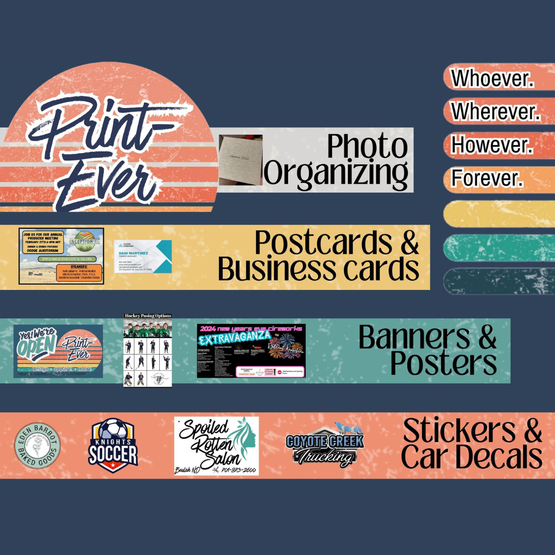 Print-Ever specializes in custom screen printing and embroidery for t-shirts, sweatshirts, hats, team uniforms, business apparel, event merchandise and more. The shop also provides professional printing services including business cards, postcards, banners, posters, stickers, and car decals, along with photo organizing to help preserve memories and projects. For custom branded apparel, promotional products, and quality print work in Mercer County, Print-Ever is a go-to local resource. It is a great fit for schools, sports teams, local businesses, nonprofits, reunions, and special events needing custom apparel and printed materials.